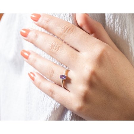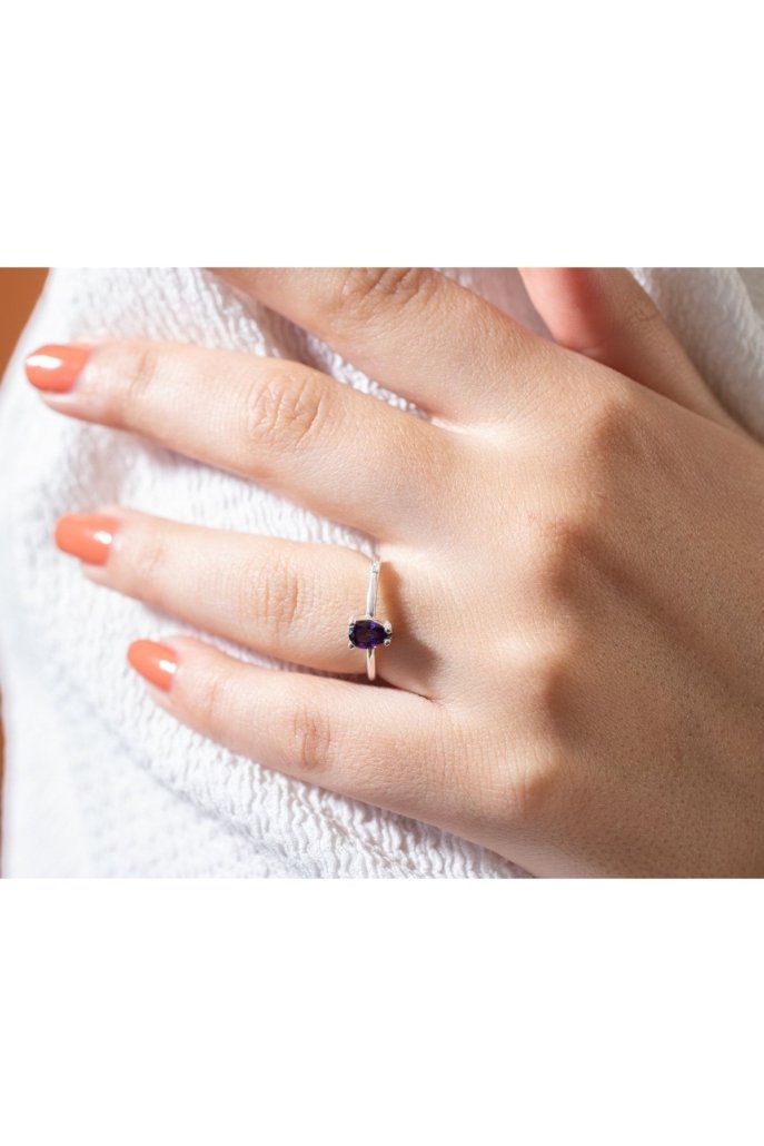• 925 Ayar Ametist Ince Gümüş Kadın Yüzük