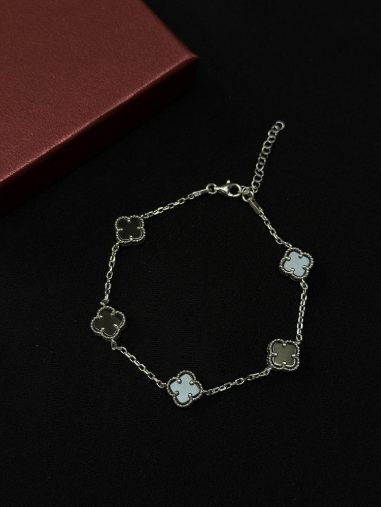925 ayar beyaz siyah yonca taşlı gümüş bileklik, stilinize anlam ve ışıltı katmak için şimdi sizi bekliyor.