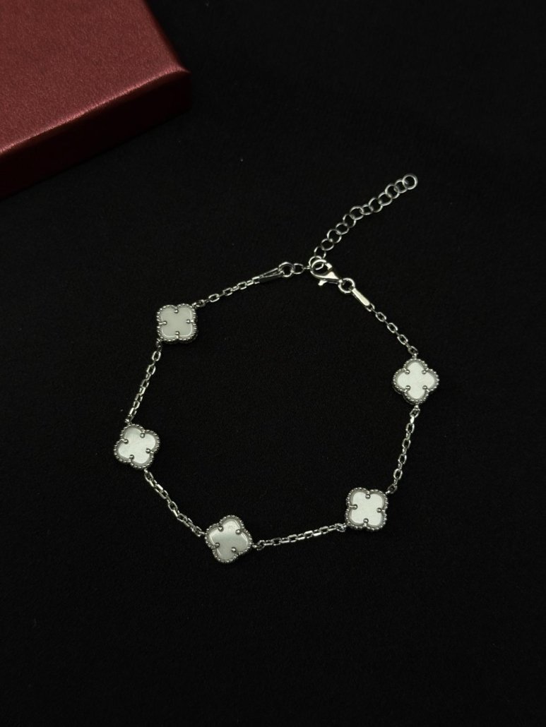 Şansın Işıltısı: Beyaz Yonca Taşlı Gümüş Bileklik