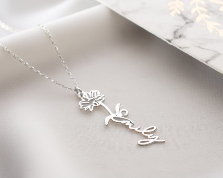 925 Ayar Doğum Çiçeği – GÜMÜŞ – KOLYE