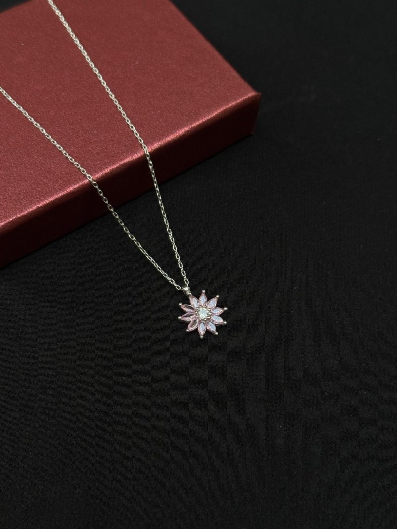 925 Ayar Papatya Desenli Gümüş Kadın Kolye