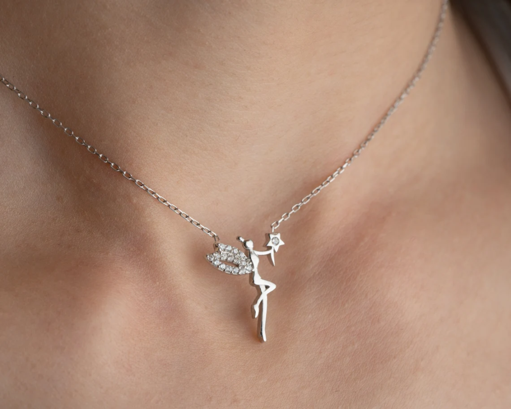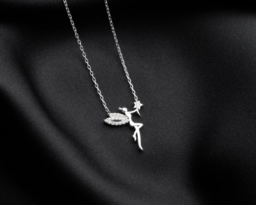 925 ayar gümüş kolye, zarif taşlı melek kolye tasarımıyla ruhsal gücü ve zarafeti bir araya getirir. Taşlı melek gümüş kolye, melek figürünü ışıltılı taşlarla süsleyerek hem manevi anlam hem de şıklık sunar. Trend kolyeler arasında öne çıkan bu özel tasarım, hem günlük kullanımda hem de özel anlarda rahatlıkla tercih edilebilir. Yüksek kaliteli 925 ayar gümüş malzeme ile uzun ömürlüdür ve her tarzla uyum sağlar. Hem kendiniz için hem de sevdiklerinize hediye edebileceğiniz mükemmel bir seçenek.