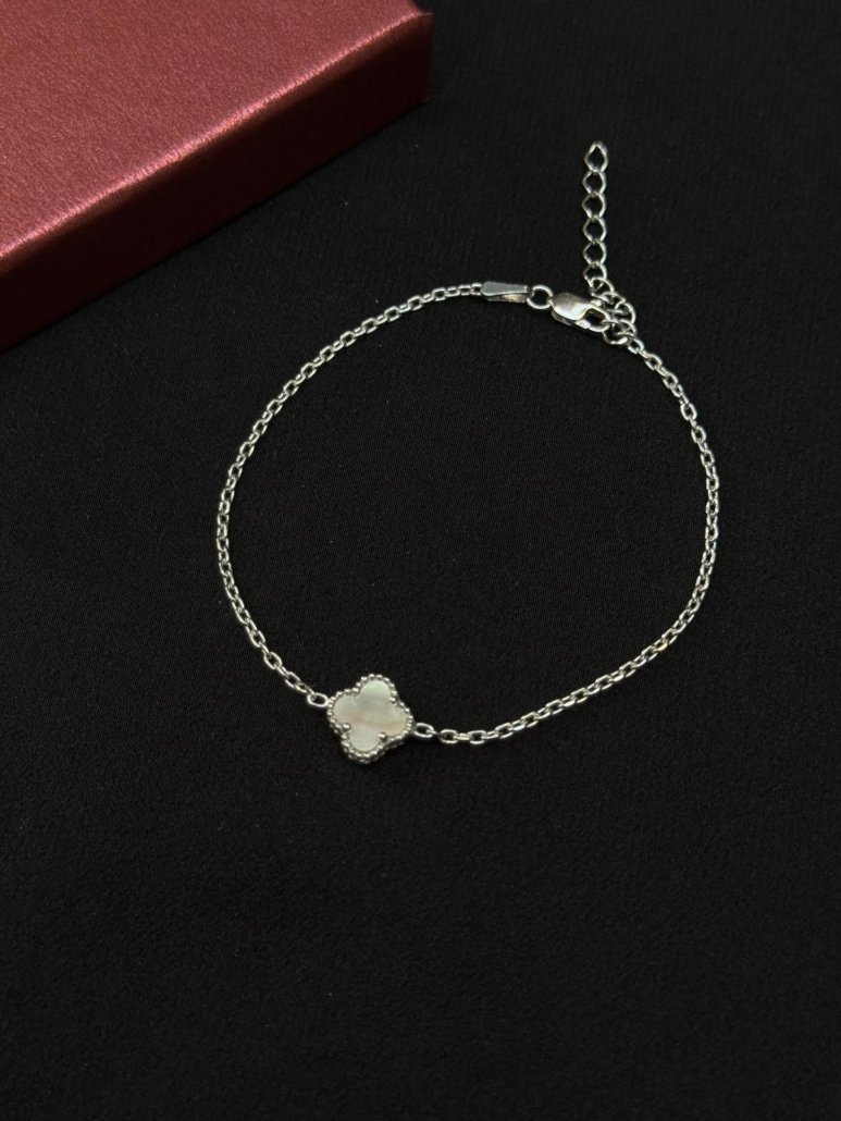 925 Ayar Tek Beyaz Yonca Taşlı Gümüş Kadın Bileklik
