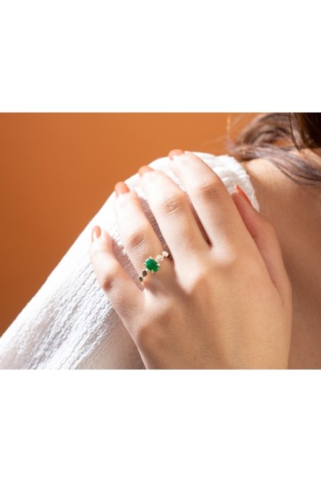 925 ayar gümüş malzeme ile üretilmiş, uzun ömürlü ve kaliteli bir aksesuar deneyimi sunar; Göz alıcı zümrüt taşı, yüzüğün parlaklığını ve şıklığını artırarak dikkat çekici bir görünüm sağlar; Zümrüt kesim taşı, ışığı mükemmel bir şekilde yansıtarak her açıdan göz kamaştırıcı bir etki yaratır; Parlak yüzey işlemesi ile yüzüğün her detayında sofistike bir parlaklık ve zarafet sunar;