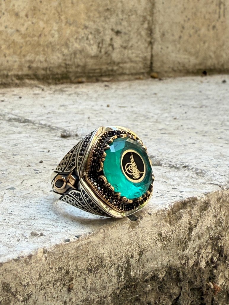 “Güç, tarih ve zarafeti bir araya getiren bu yüzük; mavi zirkon taşının ışıltısını, Osmanlı tuğrası motifinin asaletiyle bütünleştiriyor. 925 ayar gümüşten üretilmiş bu özel parça, geleneksel stilin modern yansıması olarak koleksiyonunuza değer katacak.”